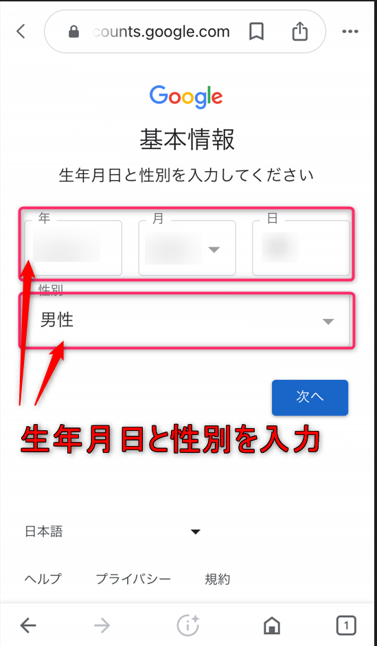 まずはGメールアカウント作成ページにアクセスしてアカウント作成画面を開きます。